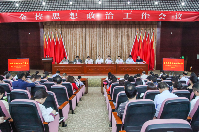 6月12日下午我校召开全校思想政治工作会议。全体校领导,各党总支书记、副书记;各部门主要负责人;全体思政课教师;团总支书记、全体辅导员;教务处以及党群部门人员共计150余人参加了会议,会议由党委副书记、校长李皖主持。
