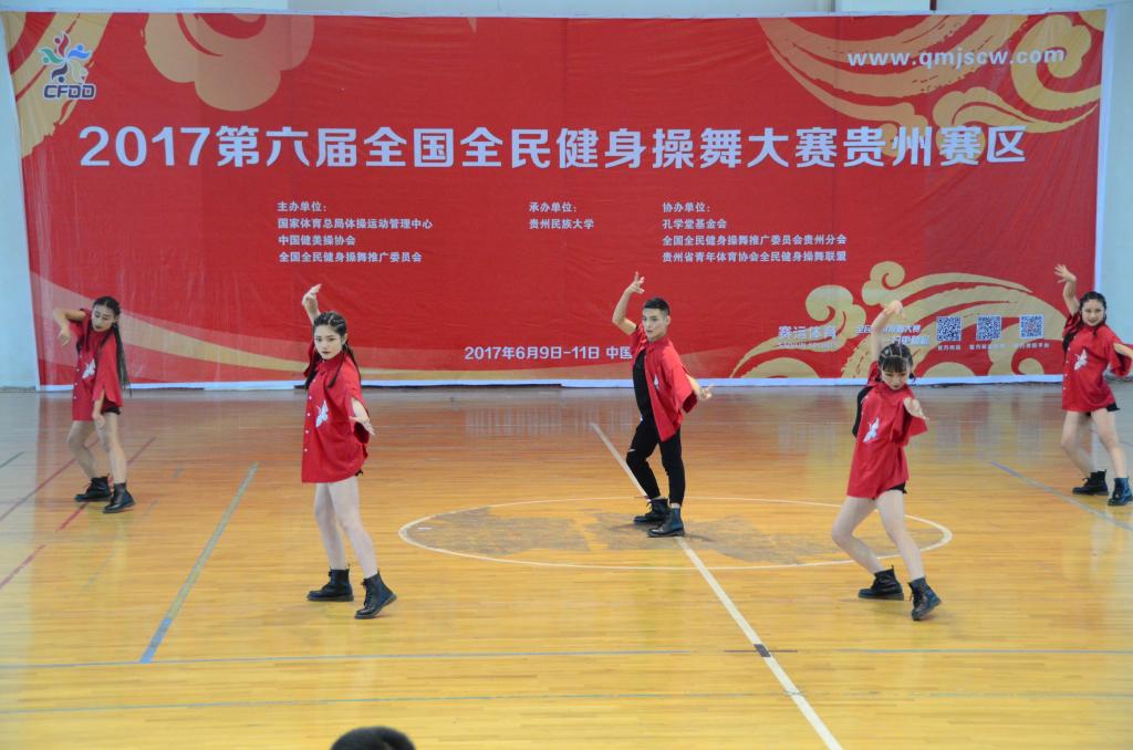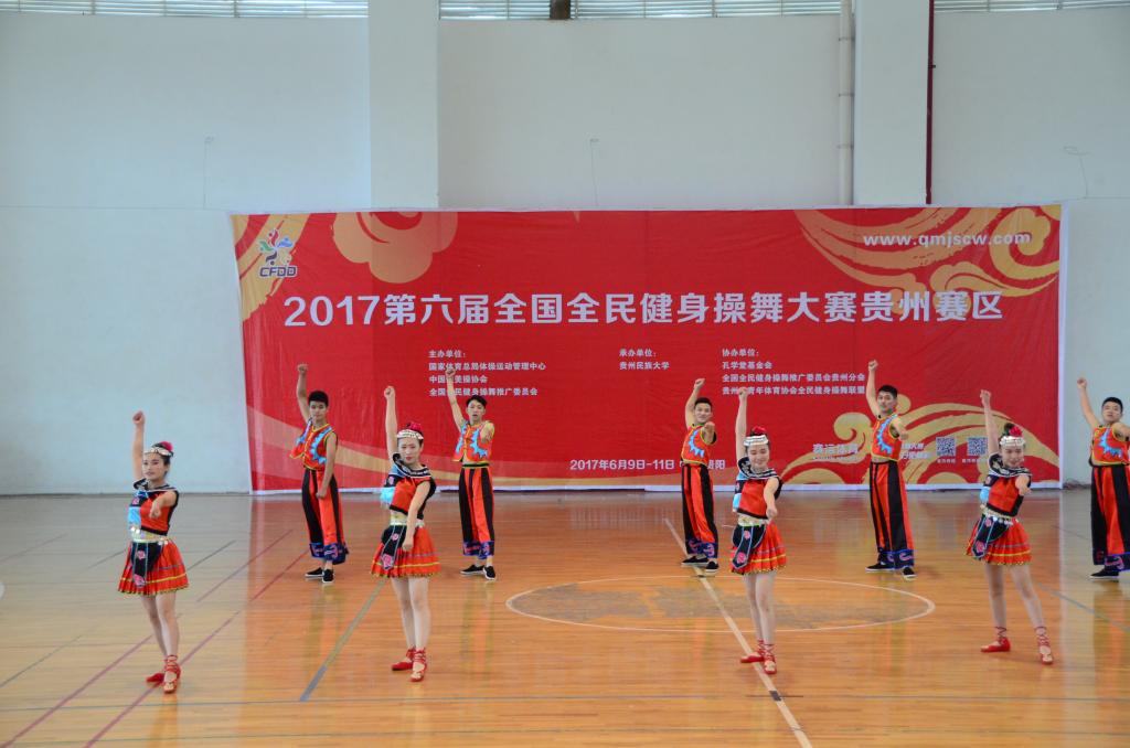 第六届全国全民健身操舞大赛贵州赛区比赛于2017年6月10日在贵州民族学院体育馆隆重举行。本次比赛由国家体育总局体操运动管理中心、中国健美操协会主办。全民健身操舞比赛是为了推动全民体育运动的广泛开展,丰富全民体育活动的内容与形式,促进全民体质健康和体育技能水平的不断提高。参加此次比赛的队伍都是全省各高校、高职、高中、初中、小学及幼儿园学校中的优秀队伍,他们训练有素、编排新颖、有感染力,使得比赛精彩纷呈、高潮迭起。