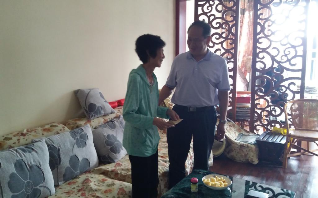 7月18日下午,为庆祝建党96周年,学校党委书记邓惠宾同志在组织部张仁俊部长、离退休党总支书记赵景铮同志陪同下,走访慰问了我校原党委书记、有50年以上党龄的退休老党员石鸿志同志,代表学校致以崇高的敬意与亲切慰问。