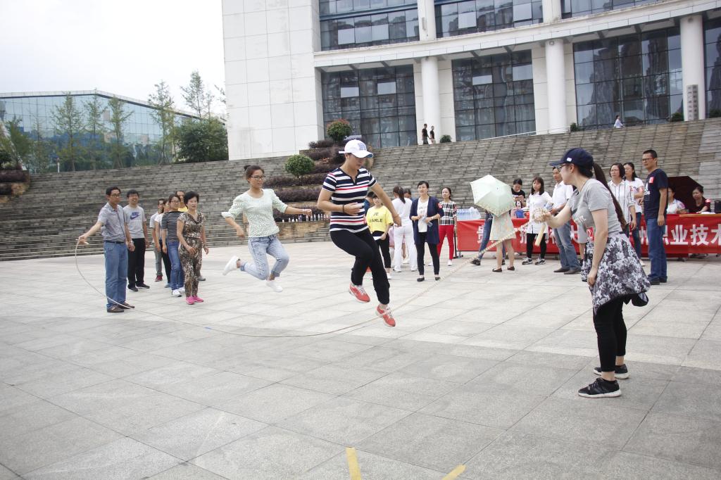 2017年9月15日14:00,在云潭南路校区校前广场,由校工会主办,商业与贸易学院承办的教师节跳绳比赛圆满结束。活动由校工会主席周吉萍主持,全校共计50余名教师参加了比赛。