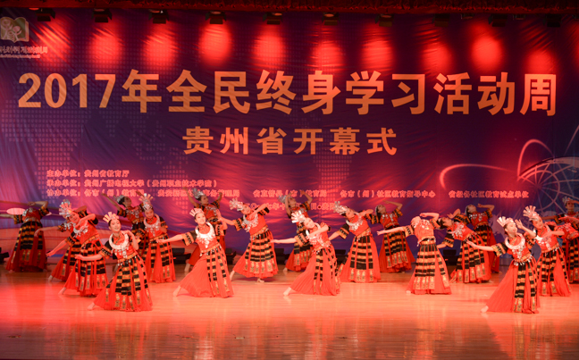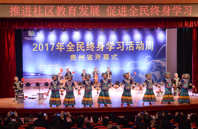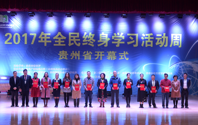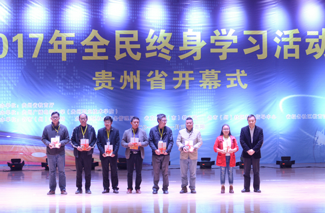 本届活动周开幕式上展示了全省全民终身学习的最新成果,为贵州省社区教育指导中心、省级各社区教育试点单位进行了授牌,表彰和展示了省级“百姓学习之星”“终身教育活动品牌”,上海市老年教育教材研发中心向各市(州)社区教育指导中心赠送了具有上海特色的老年教育普及教材,安龙县中等职业学校、贵阳市老年大学、贵州职业技术学院还分别带来了精彩的节目:布依八音座唱《布依情韵》、时装表演 《山那边》和群舞《一抹红》。开幕式后,中国成人教育协会社区教育专业委员会秘书长庄俭教授作了“终身学习”讲座。