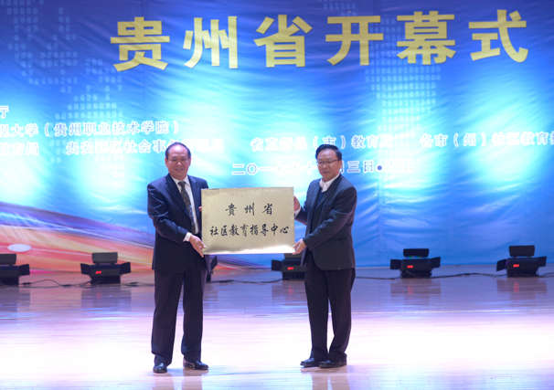 党委书记邓惠宾作了热情洋溢的致辞,对参会领导和嘉宾致以热烈的欢迎和美好祝愿。中国成人教育协会常务副秘书长薛华领教授出席开幕式并作了发言,他指出,贵州省全民终身学习活动整体呈现出了“各唱各的拿手戏,各打各的优势牌”的良好发展局面,并对贵州全民终身活动周寄予厚望。贵州省教育厅副厅长级督学何秀黔作重要讲话,他指出,举办全民终身学习活动周,就是要宣传终身学习的理念,倡导全民终身学习,完善终身学习体系,营造“时时能学、处处可学、人人皆学”的社会环境,达到“理念入心、人人参与、快乐学习”的目标。何秀黔要求,各级教育行政部门要抓好本行政区域内终身教育工作的统筹协调和综合管理,编制终身教育发展规划并实施;各类学校要尽其所能,向社会开放教育课程,促进终身教育发展。何秀黔强调,贵州广播电视大学要充分发挥试点单位的示范引领作用。最后,教育厅厅长王凤友代表省教育厅向学校授予“贵州省社区教育指导中心”机构匾牌并宣布活动周开幕。