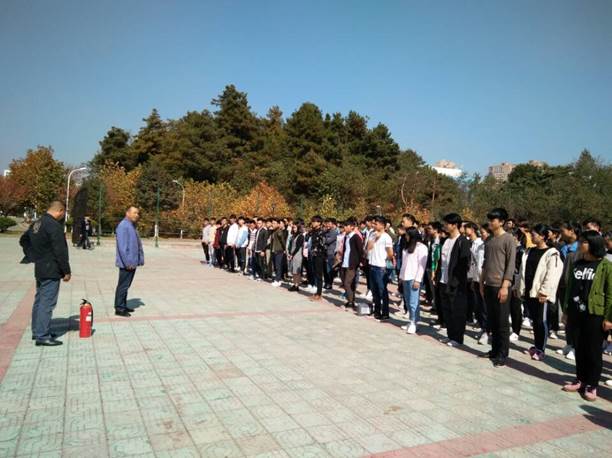 为认真贯彻落实省委省政府、省教育厅等有关校园安全稳定会议、文件精神,切实加强全校师生在发生火灾等突发事件时能有效正确使用灭火器,确保全校师生的人身财产安全,全力维护校园安全稳定,2017年11月8日13:00时,由保卫处牵头,学生处、后勤处、机电与能源工程学院、艺术与设计学院、信息工程学院、商业与贸易学院、建筑工程学院、中等职业技术学院、物业公司等部门参与,组织我校300余名师生、员工在体育场进行了灭火器材的使用培训。