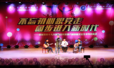 由校团委主办的“不忘初心跟党走 阔步进入新时代——庆祝党的十九大胜利召开暨第六届技能文化艺术节开幕式”11月8日晚上7点在我校礼堂隆重举行,学校党委书记邓惠宾老师、副书记郭万才老师以及各学院党总支书记、团总支书记和在场师生共900余人参与了此次活动。