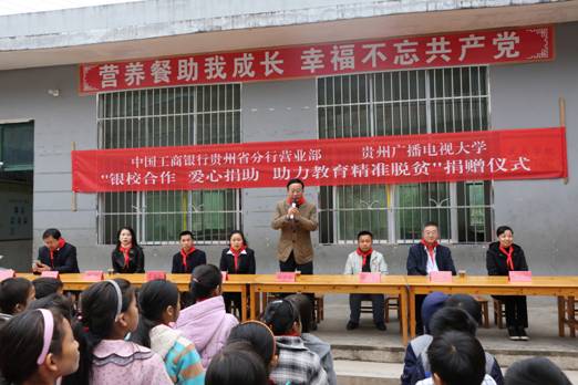 捐赠仪式上,贵阳贵溪支行行长罗竞代表工商银行贵州分行营业部发言,她表示:工商银行一路走来发展至今,始终怀揣一颗感恩的心,不忘初衷。以高度的社会责任感,胸怀大爱,勇于担当,扶贫解困。本着“工于至诚、行以致远”的价值理念,牵手贵州广播电视大学(贵州职业技术学院)捐资助学,帮助莘莘学子。希望通过努力,让爱心捐助撑起梦的希望,点滴善举汇聚正能量,为孩子们的健康成长贡献工行人的力量。