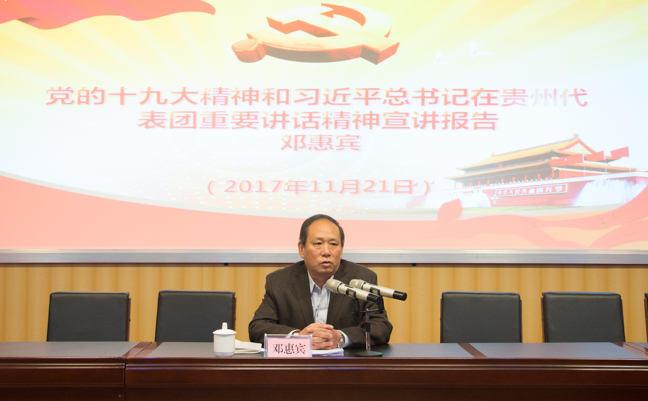 11月20日下午,学校党委在云潭南路校区组织开展了党的十九大精神和习近平总书记在贵州代表团重要讲话精神宣讲报告会。报告由学校党委书记邓惠宾同志主讲。