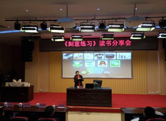 为激发学生阅读兴趣,丰富课余文化生活,我中心邀请到了机械工业出版社郑琳琳(副编审)于2017年12月7日晚7:00在图书馆学术报告厅主讲《刻意练习》读书分享会,本次活动由樊登读书会主办,创新创业俱乐部承办,产教融合社会服务平台、校企合作与产业发展中心、招生就业指导中心、团委协办。参加本次活动的有樊登读书会贵阳分会会长、贵阳嘉信教育科技有限公司总经理等五位校外嘉宾以及260余名学生代表。