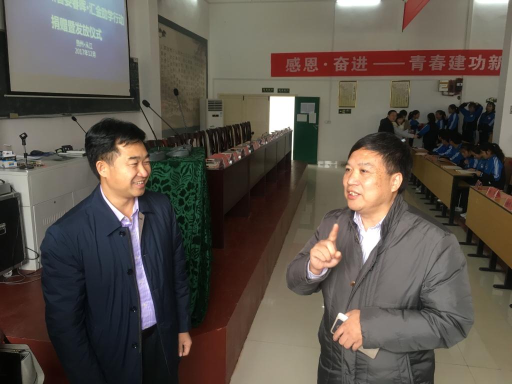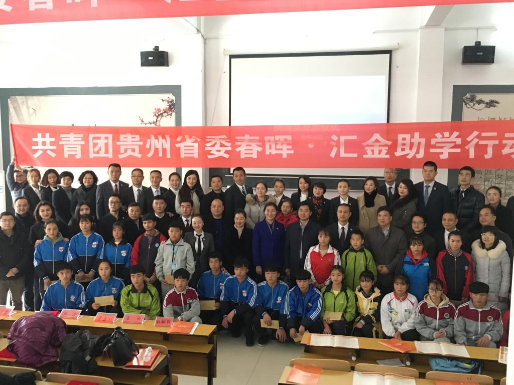 “春晖•汇金助学行动”是为深入学习贯彻党的十九大精神,按照感恩•奋进——青春建功新时代工作的安排和部署,我校为感召爱心企业积极参与精准教育扶贫,切实解决贵州贫困地区中学生生活等困难而发起的公益活动。此项公益活动,我校作为汇金博达控股集团的物业租赁方,经与该集团积极对接,双方商定今后五年汇金博达控股集团共捐赠50万元,无偿对我校贫困学生资助。