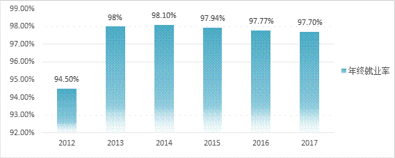 2017年我校就业工作在学院党委行政的领导下,在省高校毕业生就业工作办公室的指导下,通过职能部门和各学院的通力协作,取得较好成绩。根据贵州省大中专毕业生就业管理信息系统中12月31日就业率数据的详细统计,我校2017届毕业生的年终就业率达97.7%。具体完成情况如下: