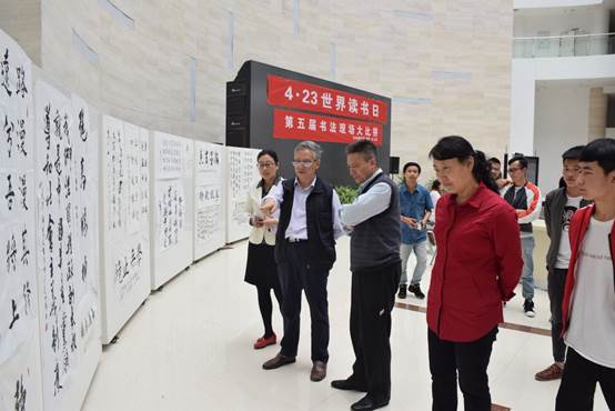 活动之五书法现场大比拼。4月23日中午,由图书馆、团委、关工委共同主办,学生社团知彩书友会、青年志愿者协会协办的“第五届书法现场大比拼”如期在图书馆一楼大厅举行。各学院(部门)师生积极参与,在比赛现场一展才华。李勤副校长亲临现场观看比赛。关工委孙鲁痕教授、苏起龙副教授应邀点评参赛作品并评奖。
