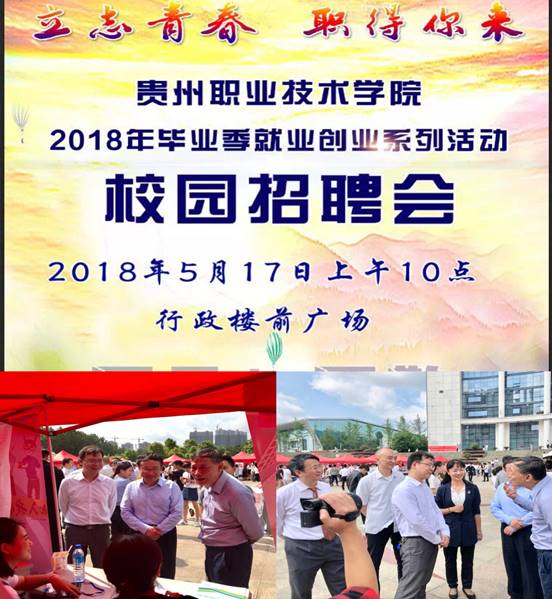 最后,由李皖校长宣布贵州职院2018年毕业季就业创业系列活动—正式启动。与会领导嘉宾在校领导的陪同下视察了校园招聘会现场,亲切询问了参会企业和学生求职情况。