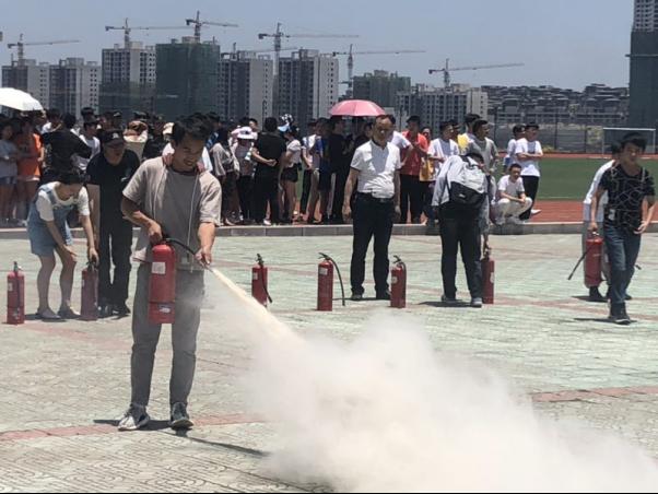 随后,罗文金处长向参加演练的师生讲解了灭火器材的灭火原理及正确使用方法,并组织在场师生依次进行灭火器材的实操使用。