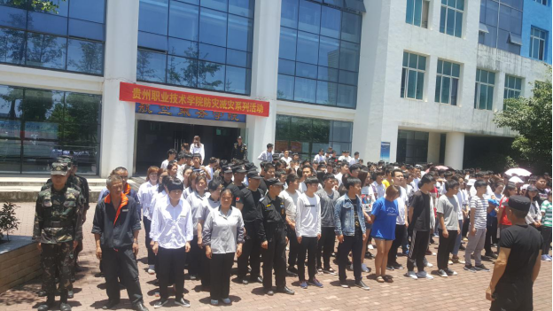 为认真贯彻落实省综治办、省公安厅、省教育厅系列文件、会议精神和学校2018年校园及周边治安综合治理工作计划、实施方案精神,切实加强学校师生应急疏散演练,有效预防在火灾、地震、建筑物倒塌等各类突发事件时能有条不紊地疏散师生逃离事发现场,确保师生的人身财产安全,维护校园安全稳定,2018年6月7日13:00时,由保卫处牵头,后勤处、学生处、各学院、中职校、物业公司、保安公司等部门参与,组织我校师生在敏行楼、体育场开展了防灾减灾疏散逃生演练系列活动。
