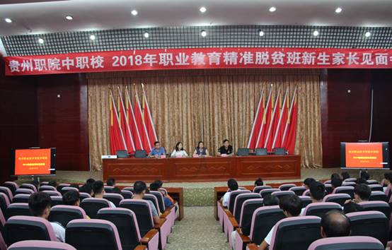 为促使2018级精准扶贫新生能尽快适应全新的学习生活环境,在新的起跑线树立新的目标,做好角色转变,让广大新生和家长及时了解国家、省委省政府及学校对职业教育全免费精准脱贫班的各项优惠政策,新生报到当天下午3点半,中职校在行政楼9楼会议室召开2018级精准脱贫班新生及家长见面会。