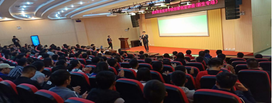 在讲座过程中,余锐老师首先用那些独具特色创业点子以及创业案例,引导学生开创思维,同时还进行了开创思维的游戏互动。创新创业俱乐部副会长——杨贵同学上台发言,他跟同学们介绍了自己进大学以来的生活及创业经历。最后,余锐老师从自己的创业经历串联着自己大学时和同学碰撞的各种想法,告诉同学们,我们正是鲜衣怒马正少年,敢想!敢做!才能真正的创业,机会留给有准备的人,同学们要时刻准备着迎接机会的到来!