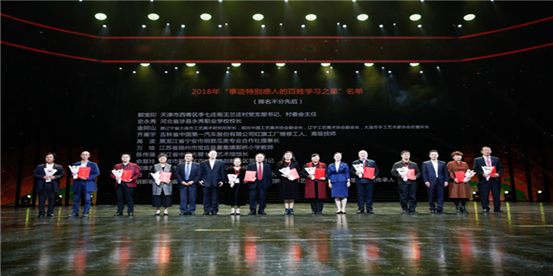 王继平司长、郑树山会长为郭宝印等11位2018年“事迹特别感人的百姓学习之星”颁奖