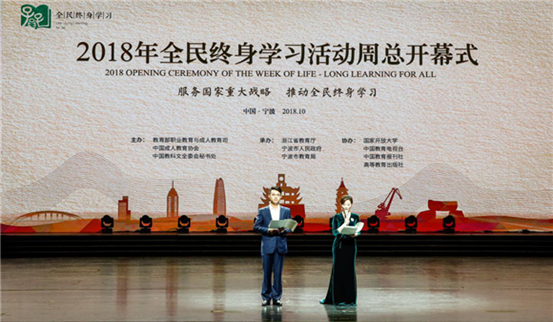 10月25日,2018年全民终身学习活动周全国总开幕式在浙江省宁波市隆重举行。本届活动周由教育部职业教育与成人教育司、中国成人教育协会、中国教科文全委会秘书处主办,浙江省教育厅、宁波市人民政府承办,国家开放大学、中国教育电视台、中国教育报刊社、高等教育出版社协办。以“服务国家重大战略,推动全民终身学习”为主题,学习贯彻党的十九大精神和全国教育大会精神,部署新时代中国特色继续教育工作。教育部职成司司长王继平,中国成人教育协会会长郑树山,浙江省委教育工委书记、教育厅厅长郭华巍,宁波市人民政府副市长许亚南,郑州市人民政府副市长孙晓红等出席了开幕式。