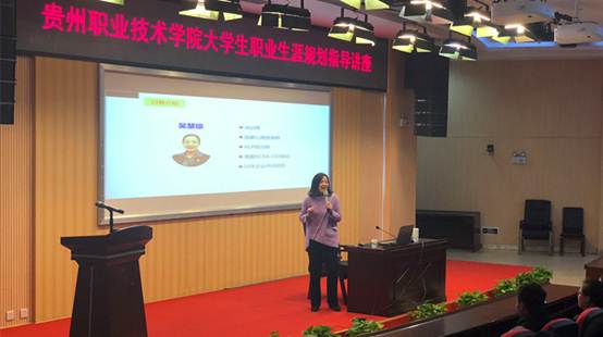 为提高我校毕业生的就业技能和实践能力,引导和促进毕业生专业技能训练,提高在校大学生的求职能力和职业规划意识,以贵州职院第二届大学生职业生涯规划大赛为契机,招就中心组织并邀请了国家三级心理咨询师、前安邦保险集团培训中心总经理、高校生涯规划及就业指导师资培训项目供应商、新锦成研究院特邀培训师、NLP培训师吴慧琼老师于2018年11月13日晚在图书馆学术报告厅开展了有关“求职规划、就业指导”专题讲座。240余名同学及大赛参赛选共参加了此次讲座。
