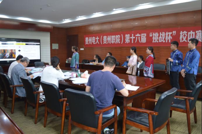 2019年5月24日上午,我校第十六届“挑战杯”全国大学生课外学术科技作品竞赛校内赛决赛在行政楼6楼会议室举行。活动邀请到原贵州广播电视大学远研所所长辛小林、贵州商学院创新创业学院院长吴晶鑫、贵州理工学院团委书记李朋担任评委,来自各学院的21支队伍参加比赛。