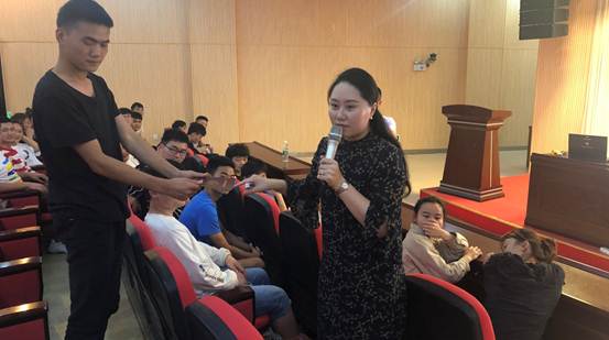 讲座开始,蔡老师先向在场同学提出来几个问题:大学生要如何在面试中取得深刻良好的第一印象;大学生要如何自信地表达实现与考官的良好沟通;大学生如何在面试中塑造职业人的专业形象;大学生如何从容举止在众人中脱颖而出。随后蔡老师讲解了大学生的求职形象、职场形象管理标准,并根据现场同学的着装为例,重点解构了职场形象品质突显的标准,并邀请同学上台演示站姿、坐姿、目光和手势等,让现场同学身临其境的学习了职场仪态的礼仪规范。最后模拟了企业面试的场景,让同学们感受了职场称呼、介绍、握手、引领等会面礼仪,传授了基本职场礼仪及实战教学,避免因礼仪妆容不当而与工作机会失之交臂。
