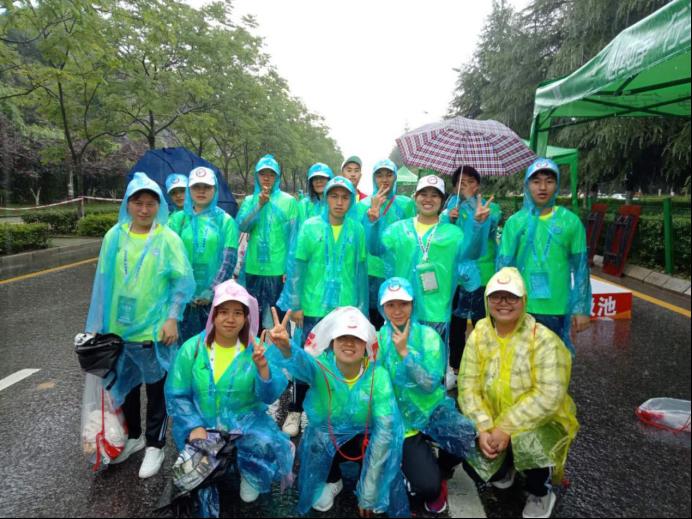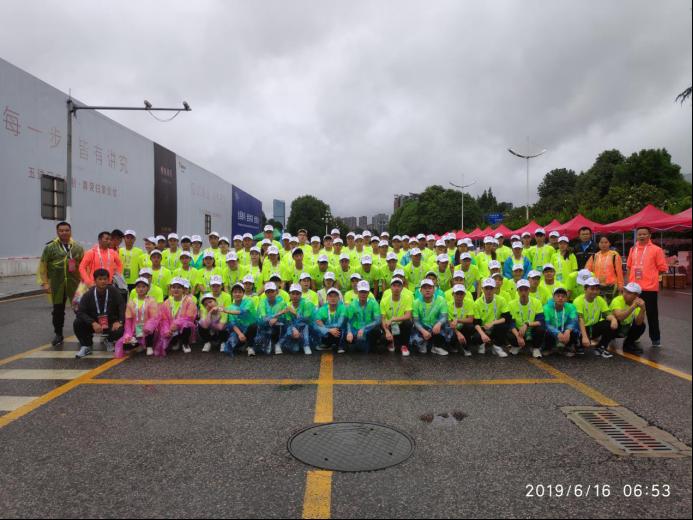 爽爽贵阳,生态领跑。广汽传祺·2019贵阳国际马拉松赛于6月16日在贵阳国际会展中心鸣枪,来自世界各地的2.5万余名选手激情开跑。在比赛的背后有这样一群默默付出的人——志愿者,为保障赛事的顺利进行,我校2198名志愿者凌晨4点冒着倾盆大雨乘车来到各自岗位开始大赛志愿者服务工作。