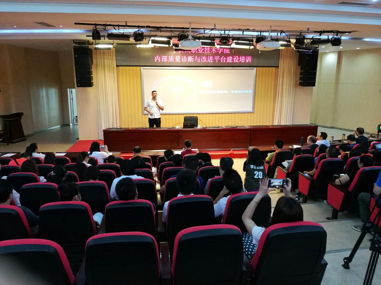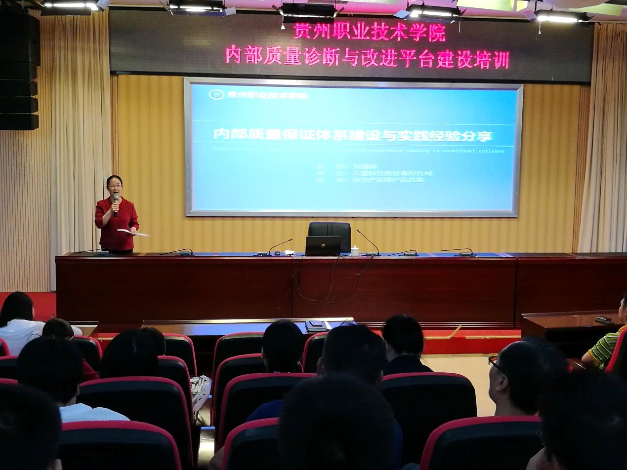 为了提高学校各部门和全体教职员工对内部质量保证体系诊断与改进工作的重要性认识,进一步统一思想,按照诊断与改进的内容、要求及程序,依托平台建设,全面推进诊断与改进工作有序开展,确保学校优质校建设项目顺利通过验收,9月12日上午,由质量办组织,在观山湖区云潭南路校区图书馆二楼学术报告厅开展了内部质量诊断与改进平台建设培训,培训会由质量办张涤主任主持,邀请了我校诊改平台中标单位三盟科技股份有限公司刘璟翀总监作题为“内部质量保证体系建设与实践经验分享”的报告。学校各部门副科级以上干部、二级学院及基础部该时间段无课的所有教师参加了培训。