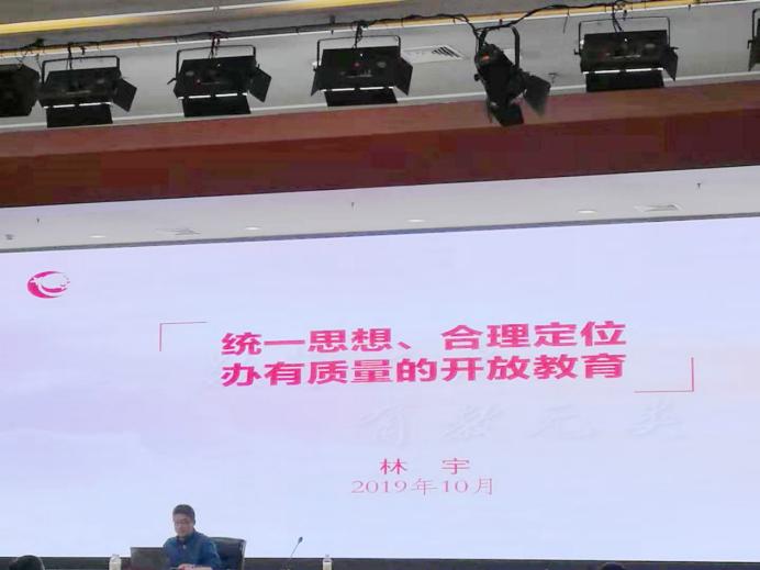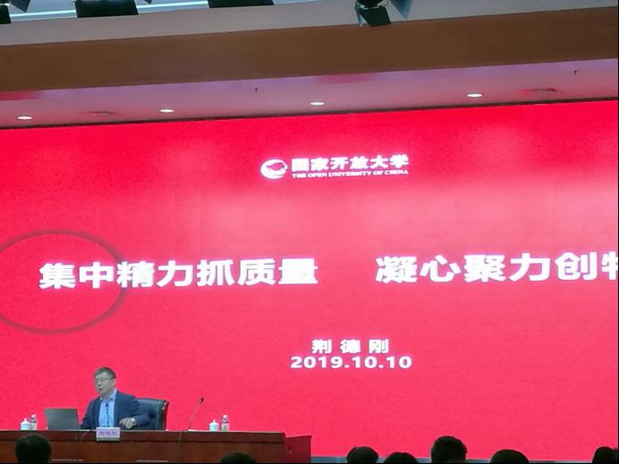 10月10日,国开总部副校长鞠传进宣布调整校务委员会组成人员(主任、副主任、秘书长、部分委员)的决定,国开总部党委书记、校长荆德刚作校务委员会工作报告,国开总部副校长林宇作题为《统一思想、合理定位——办有质量的开放教育》的主题报告。