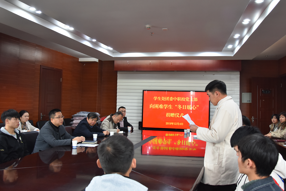 为深入开展“不忘初心、牢记使命”主题教育,切实解决学校精准扶贫学生及生活困难学生在学习、生活上的困扰,体现学校党委对困难学生的关心关爱,助力决胜脱贫攻坚,学生处团委中职校党支部于2019年12月4日举行向困难学生“冬日暖心”捐赠仪式。支部全体党员同志及24名受捐赠学生代表出席捐赠仪式。学校党委书记王爱华同志以普通党员身份参加仪式。