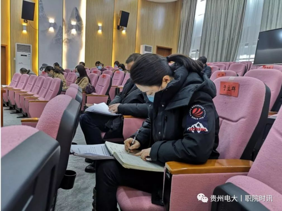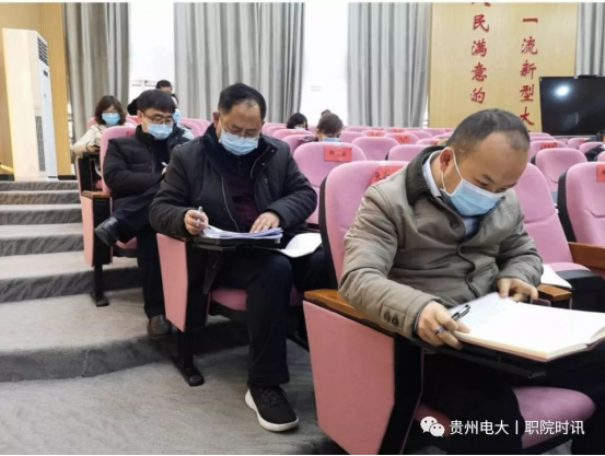 贵州电大(贵州职院)疫情防控工作动态第6期1月 31 日,农历正月初七,学校召开党委(扩大)专题会议,传达习近平总书记关于新型冠状病毒感染的肺炎疫情防控工作一系列重要指示精神和党中央、国务院各项决策部署,贯彻落实省委、省政府、省委教育工委、省教育厅、国家开放大学工作安排,并就疫期针对招生、后勤、教学等重点环节做好预案听取了相关分管校领导的汇报,对学校疫情防控工作进行再研究、再部署、再动员。充分体现了学校党委行政坚决贯彻落实党中央、习近平总书记指示精神,切实把师生生命安全和身体健康放在第一位的浓浓民生情怀,充分体现了学校党委行政以师生为中心的发展思想,极大增强了全校人民的信心,鼓舞了全校打赢疫情防控战的决心。