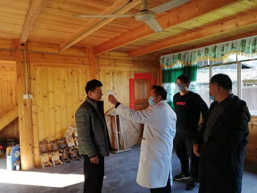 疫情防控,思想统一是前提,措施得力是关键。孙飞同志在学校党委行政和当地党委、政府的悉心指导和大力帮助下,与村支两委同志同心同德同行,以“三个强化”在三联村打出了一套疫情防控“组合拳”。一是强化排查力度。返村至今,孙飞与村脱贫攻坚指挥所、驻村工作队、村医组成的临时小组认真做好疫情监测、排查、预警、防控等工作,严防死守、不留死角,切实做到底数清、情况明、动态清、措施实。期间,共对57名省外务工返乡人员进行了排查,均未发现体温过高等异常情况。二是强化安排部署。1月28日,孙飞同志组织村干召开了三联村应对新型冠状病毒疫情防控部署会,对当前疫情严峻形势进行了通报,并对湖北返乡及密切接触人员隔离,逐一排查1月上旬从省外返乡的务工人员,严禁村民捕捉、交易、食用各类野生动物等问题进行了统一安排。三是强化疫情检测。在做好湖北返乡人员监控的同时,加强入村通道疫情的检测是防止疫情输入的关键。从1月29日起,孙飞与三联村驻村工作队、村支两委、村医、享受村公益性岗位的人员共同组成应急小组,在有条件的3个寨子门口设置关卡轮流值守,对每一个进出本寨的车辆及人员进行排查,对走亲访友的人员进行劝返,严防输入性疫情发生。