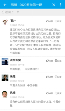 网络直播课程深受广大同学喜爱,同学们积极分享“网络第一课感言”。