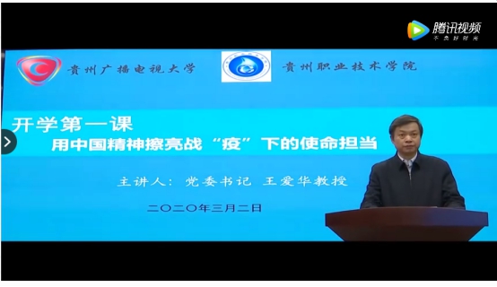 3月2日上午,线上教学开课首日,党委书记王爱华率先以《用中国精神擦亮战“疫”下的使命担当 》为题,为电大十万师生上了开学第一课。这堂特殊的“云端”思政课,把爱国情、强国志、报国行融入教育教学中,让广大师生在抗击疫情阻击战中,感受到党的伟大,社会主义制度的优越性和祖国大家庭的温暖,教育引导青年学生增强民族自尊心、自信心和自豪感,更加爱党、爱国、爱社会主义,厚植爱国主义情怀,坚定社会主义理想信念。