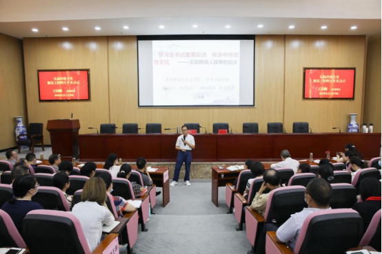 6月23日上午,省社会主义学院原副院长、一级巡视员王国麟同志来校作《学习习近平总书记重要论述 传承中华优秀文化——王阳明其人其事的启示》专题讲座。王国麟院长主要从王学精髓,王学核心要义心即理,知行合一、致良知展开阐释,最后总结出立志、定力、修身、读书、改过、豁达几点启示,提出阳明心学既是理论之学,更是实践之学,行动之学。