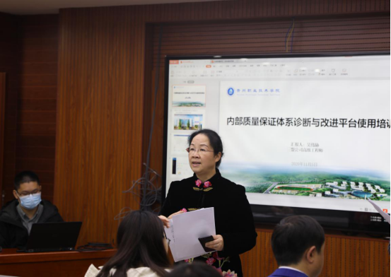 培训会汪红副校长作了动员讲话。她提出三点要求:一是各部门和各学院一定高度重视诊改工作,充分认识诊改平台建设与使用的必要性和重要性;二是联络员在填报信息过程中要及时向领导汇报,部门领导要对提交的数据信息等进行严格把关;三是一定要秉持认真负责的工作态度,填报上传的数据和文本资料务必确保客观真实。唯有如此,方能真正实现诊改平台的实时把脉、问诊改进功能,不断提升我校的人才培养质量。