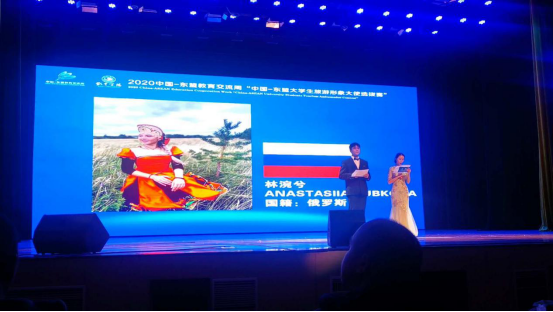 本次大赛由于疫情原因采取了线上初选,线下决赛的方式进行,共有贵州大学、广西大学、江苏大学等15所省内外高校选送的来自16个国家的29名留学生参加了比赛。比赛分为自我介绍、旅游推介和才艺表演三个环节,各国选手各展风采,通过制作精良的小视频展示自己,或穿上民族服饰走进景区带领观众游览神州风采,或在室内侃侃而谈细数中国大好河山,在才艺展示中各显其能,唱歌、跳舞、吟诗、抚琴,将比赛气氛推向了高潮。我校19级环境与艺术设计专业俄罗斯籍留学生林涴兮过关斩将进入决赛,并在决赛中取得了三等奖的好成绩,荣获“2020年中国—东盟大学生旅游形象大使”称号。