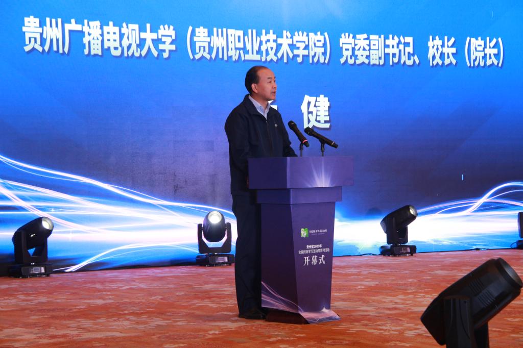 11月20日,贵州省2020年全民终身学习活动周开幕式系列活动在黔西南州兴义市隆重举行。本次活动周主题是“全民智学,助力‘双战双赢’”,旨在培养全民终身学习的意识,加快建设学习型社会,进一步构建全民终身学习的教育体系。贵州广播电视大学(贵州职业技术学院)校长汤健出席会议并讲话。党委副书记龚辉,党委委员、副校长于立群,党委委员、宣传统战部部长何滨及相关人员参加开幕式。