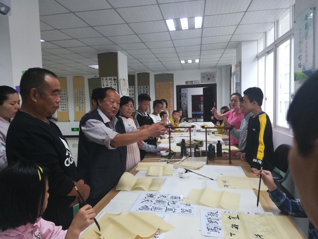 曾方伦在社区义务指导书法课(2020年百姓学习之星)
