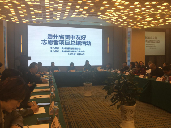 2020年11月20日,省教育厅、省教育国际交流协会在和润国际酒店召开贵州省美中友好志愿者项目总结活动。活动邀请了省内25所参与项目的高校分管领导及相关负责人参会,我校李勤副校长带队参会。