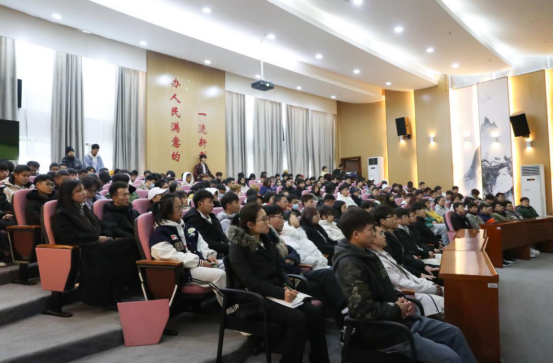 于立群副校长首先以人民日报发布的一个小视频《乘风破浪的2020,致敬每一个你》,带领大家回顾了2020年成就和艰辛,激发起学生希望与斗志。并介绍了十九届五中全会的概况,重点分析了当前的新形势,展示了我国经济、政治、文化、社会、生态发展新蓝图,以“十四五”规划和二0三五年远景目标为依托,启迪学生树立远大目标,担负起新时代大学生的新使命。