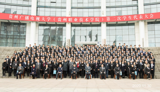 2020年11月30日,贵州广播电视大学(贵州职业技术学院)第二次学生代表大会在图书馆报告厅开幕,学校党委书记王爱华,党委副书记、校长汤健,党委副书记龚辉、钱庆生,党委委员、副校长李勤、于立群、汪红,贵州省学联驻会执行主席周杰出席开幕式,学校相关职能部门、二级学院领导、学校各级团干、辅导员代表、兄弟院校学生会代表、全体正式代表、列席代表参加开幕式。开幕式由校团委副书记李雪芬主持。