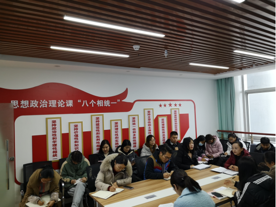 会上,程守艳副院长总结了本学期《思想道德修养与法律基础》课程“四堂联动”情况,全体思政教师集体观看由马克思主义学院录制的宣传片“四史课堂”,进一步深化党史、新中国史、改革开放史、社会主义发展史教育;思政教研室主任黄丹老师领学了中共贵州省委办公厅文件(黔党办发[2020]35号)《关于新时代学校思想政治理论课改革创新的实施意见》。