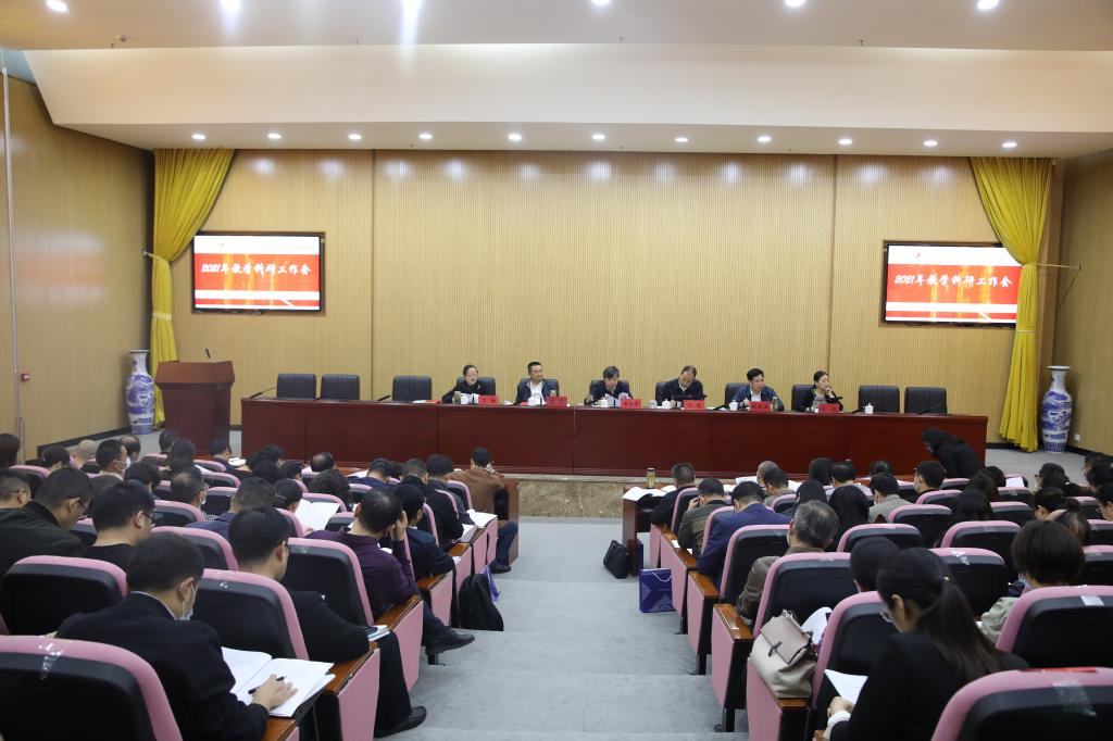 为深化学校教育教学改革,推进开放教育转型发展、学校“双高”建设,进一步提升学校教学科研工作水平和高质量发展,4月2日上午,我校在云潭南路校区召开2021年教学科研工作会议。党委书记王爱华、党委副书记、校长汤健、党委副书记龚辉、钱庆生、党委委员、副校长李勤、汪红出席会议,各分校领导和省校相关部门负责人,学校博士、教授以及负责教科研工作的老师参加会议,会议由汤健校长主持。