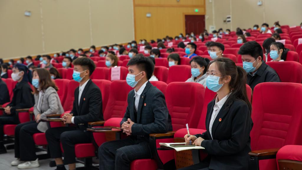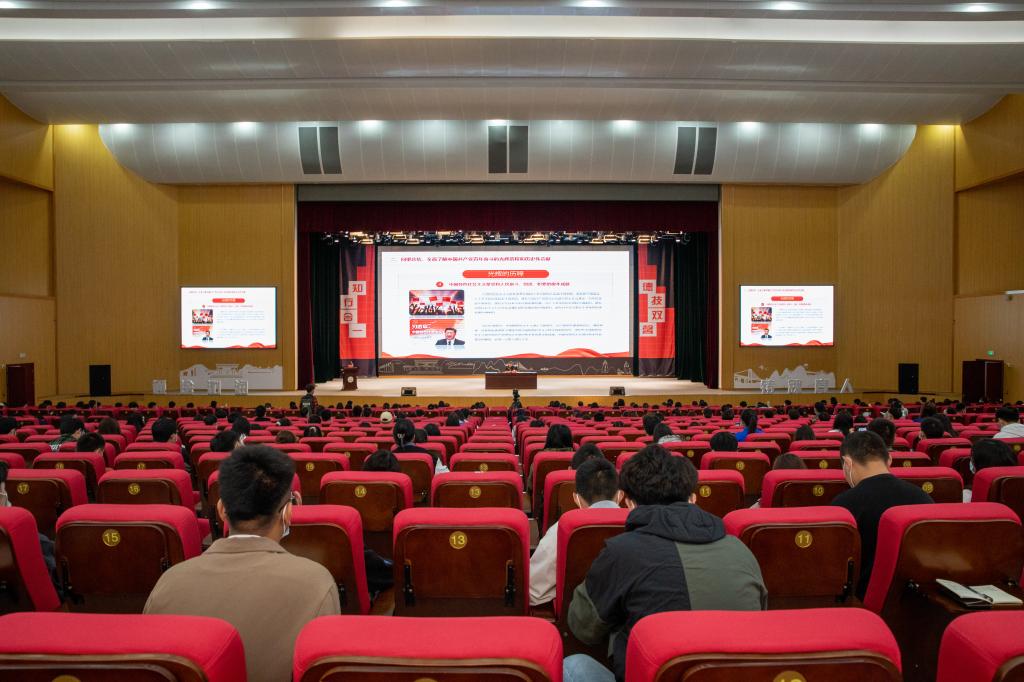 为庆祝中国共产党成立100周年,深入学习贯彻习近平新时代中国特色社会主义思想,推动全省党史学习教育各项工作扎实开展,在全省广泛营造“学党史、悟思想、办实事、开新局”的浓厚氛围。按照省委党史学习教育领导小组办公室统一安排,4月28日下午,省委宣讲团成员、贵州开放大学(贵州职业技术学院)党委书记王爱华,在贵州交通职业技术学院大礼堂开展首轮党史专题宣讲。贵州交通职业技术学院党委领导班子成员、党史学习教育领导小组办公室人员、中层干部、各系部师生代表以及职教城10所高职院校师生代表共计440人参加,本次专题宣讲由贵州交通职业技术学院党委副书记、院长吴有富主持。