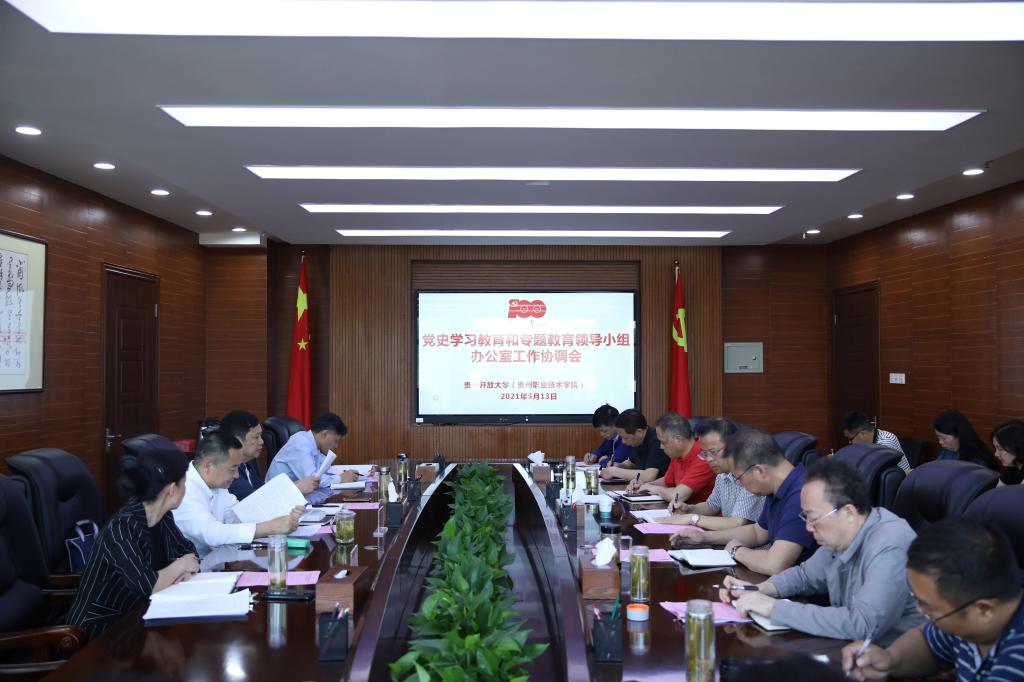 最后,龚辉副书记强调,喜迎建党100周年,深入开展党史学习教育和专题教育是我们党走过百年光辉历史的重大事件,更是学校的重要政治工作任务和重点工作之一,我们要提高政治站位、增强政治意识、提升政治能力,高标准、严要求、高质量完成各项工作任务。一要高度重视,一级抓一级地落实责任。要进一步优化二级方案设计、搞好工作部署、强化党总支和各专项工作组指导和监督检查,形成追责问责机制。二要迅速行动,一茬接一茬地干出成绩。各党总支要抓紧“按图施工”,加快推进,各级党组织要相互看齐、互相学习、共同提高。三要突出创新,锤炼精品。要凝聚成几大系列特色活动,打造出贵州开大(贵州职院)特色,做到党史学习教育和专题教育和业务工作“两手抓、两不误、两促进”。
