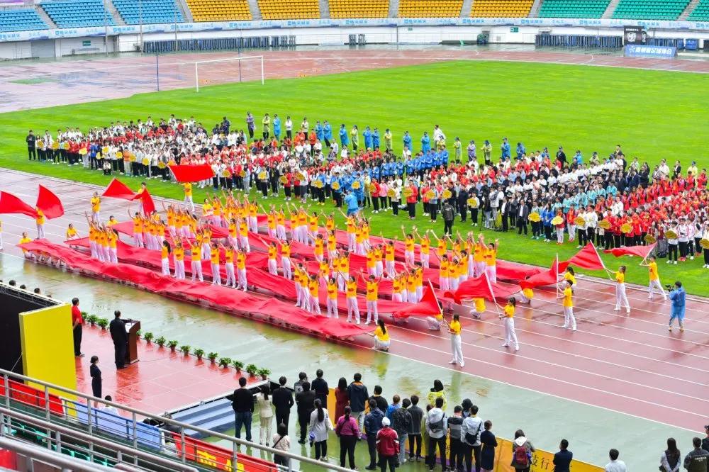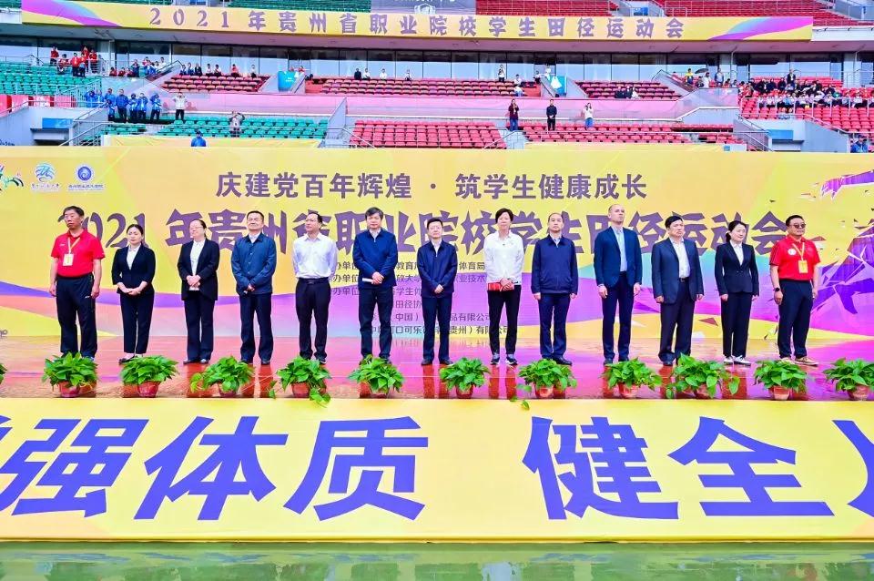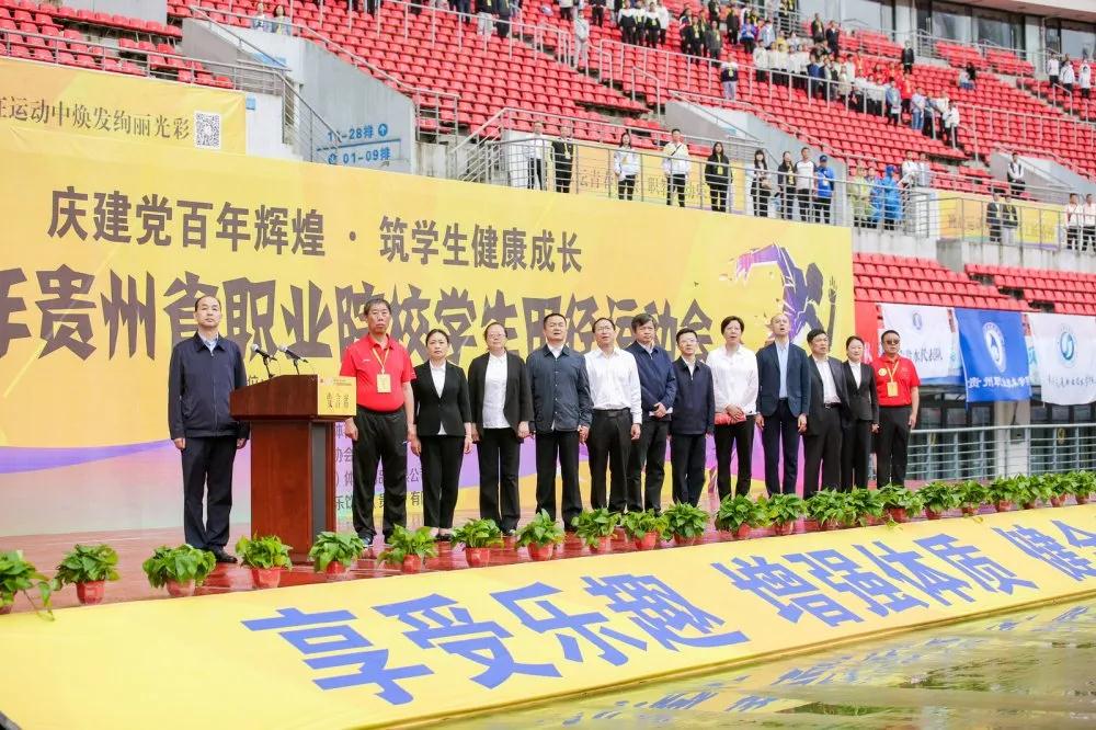 孟夏如锦、草暖风薰,多彩贵州、爽爽贵阳。在全省上下隆重喜迎建党百年、深入学习贯彻习近平总书记视察贵州重要讲话精神、全面贯彻全国职业教育大会精神之际,5月17日,由贵州省教育厅、贵州省体育局主办,贵州开放大学(贵州职业技术学院)承办的贵州省职业院校学生田径运动会开幕式在贵阳奥体中心隆重举行。贵州省教育厅一级巡视员鞠洪,省体育局二级巡视员李晓满,贵州开放大学(贵州职业技术学院)党委书记王爱华,党委副书记、校长汤健,省教育厅体卫艺处处长胡锐、省教育厅职成教处处长江疆,以及运动会组委会相关成员、在家校领导出席。开幕式由贵州开放大学(贵州职业技术学院)党委副书记、校长汤健主持。