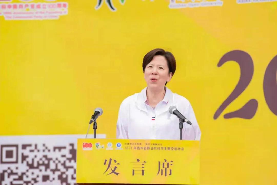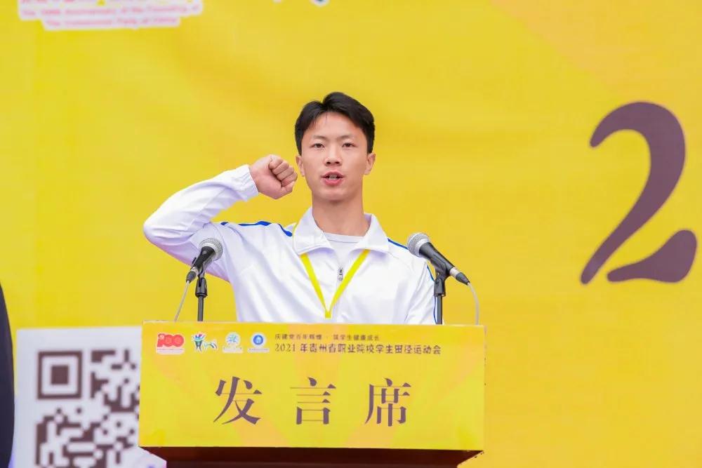 贵州省教育厅一级巡视员鞠洪讲话。他指出,党的十八大以来,以习近平同志为核心的党中央高度重视学校体育工作,提出了培养德智体美劳全面发展的社会主义建设者和接班人的总体要求。他强调,本次运动会阵容强,充分体现了学校体育之美、职业教育之美、体教融合之美、激扬青春之美。他希望,全省各级各类职业院校要以此次运动会为契机,深入贯彻习近平总书记关于职业教育的重要指示精神,围绕“人人职教、个个就业、家家致富”新的历史使命和奋斗目标,积极适应类型教育,把学校体育工作抓紧抓牢抓实,切实履行好促进学生健康成长的职责,共同奏响新时代职业院校体育奋进之歌。鞠洪巡视员宣布“2021年贵州省职业院校学生田径运动会”开幕。