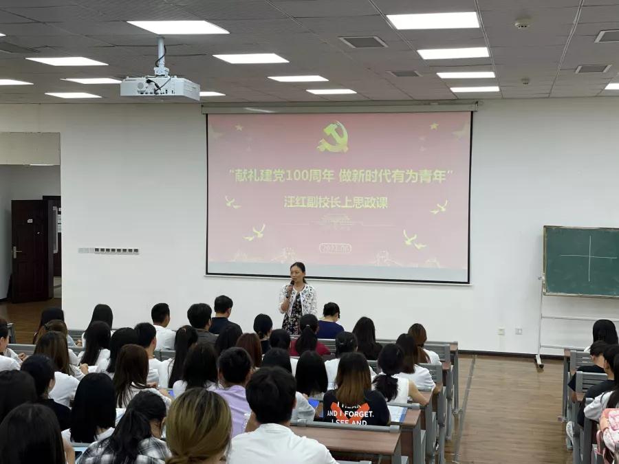 思政课的最后,汪红副校长要求同学们要在党组织的领导下扎实推进党史学习教育,回顾党的百年风华,从百年党史中汲取砥砺奋进的智慧和力量,进一步坚定理想信念,传承红色基因。希望同学们加强对党史相关知识的学习,努力提升自己的理论素养和思想政治觉悟,以实际行动积极向党组织靠拢,争取早日成为一名合格的共产党员。她勉励同学们树立终身学习的理念,加强专业知识的积累和职业技能的提升,极力将专业理论知识运用于具体的工作实践,真正做到知行合一。希望同学们珍惜这个时代、担负时代使命,在担当中历练,在尽责中成长,让青春在新时代改革开放的广阔天地中绽放,让人生在实现中国梦的奋进追逐中展现出勇敢奔跑的英姿,努力成为德智体美劳全面发展的社会主义建设者和接班人!