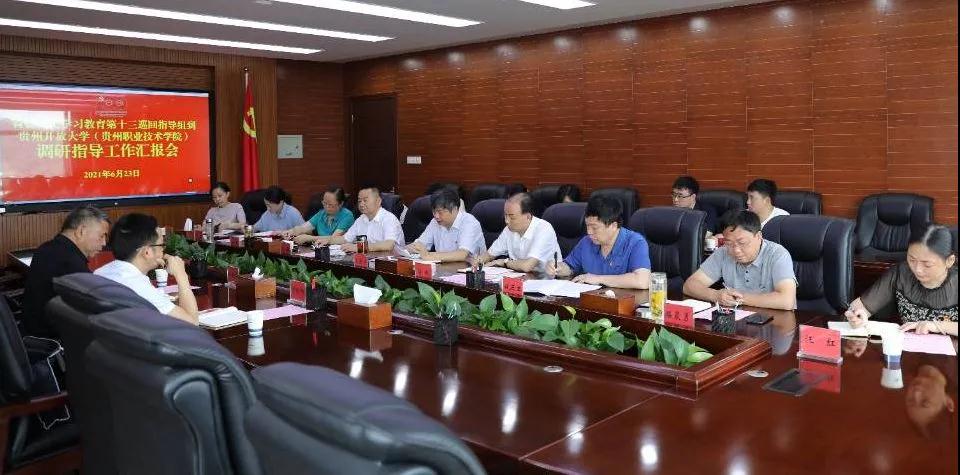 指导组传达了党史学习教育中央第八指导组关于贵州开展好党史学习教育的指示精神,对学校党史学习教育工作所取得的成绩给予了充分肯定,并结合中央和省委对下一步党史学习教育的深入推进提出了具体要求:一是“七一”前要全部完成“1+4”规定动作,通过形式多样的专题学习,加深党员对党史的认识,“七一”后要围绕习近平总书记“七一”重要讲话精神开展专题学习和专题宣讲;二是按照中央、省委要求,完成所有规定动作;三是加快推进“我为群众办实事”,扎扎实实办好聚焦度高、影响较大实事,防止走过场;四是按照中央和省委要求,高质量召开专题组织生活会和民主生活会,进一步严肃党内政治生活;五是进一步推进党史学习教育与学校发展相融合、相促进,杜绝“两张皮”。希望开放大学多提炼特色亮点和典型案例,为全省党史学习教育贡献、共享开大成果。