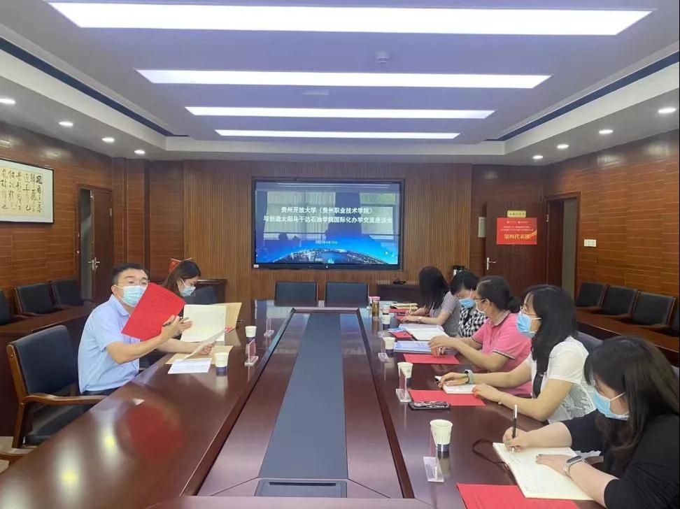 李勤副校长代表学校向创造太阳乌干达石油学院副校长段晓飞一行的到来表示热烈欢迎。她表示,学校双高建设提升国际化办学的任务很艰巨,希望借助创造太阳乌干达石油学院这个平台,对接非洲的职业院校,开拓与非洲国家的国际化合作项目,加快我校国际化办学的高质量发展。