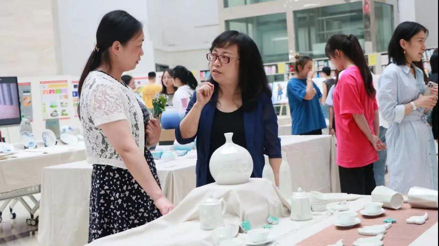 开幕式结束后,各位领导和嘉宾参观展览作品,王爱华书记亲切表扬了同学们,也寄语全院教职工要不断创新,在育人质量上不断提升。各位领导和嘉宾对展览给予了充分的肯定。
